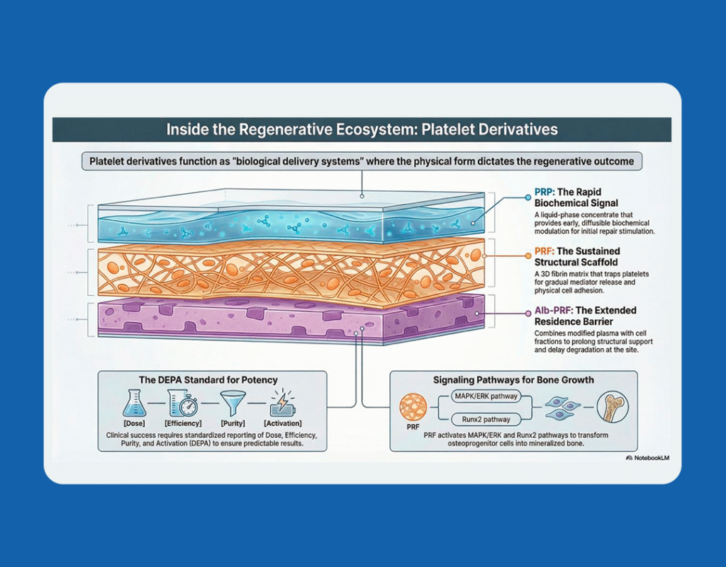 Carlos Fernando Mourão e Gutemberg Gomes Alves Resumo Executivo Os derivados plaquetários, incluindo o Plasma Rico em Plaquetas (PRP) e a Fibrina Rica em Plaquetas (PRF), emergiram como ferramentas essenciais na medicina regenerativa ao concentrar sinais autólogos que coordenam o reparo tecidual. No entanto, o campo atualmente é caracterizado por significativa heterogeneidade na composição dos […]